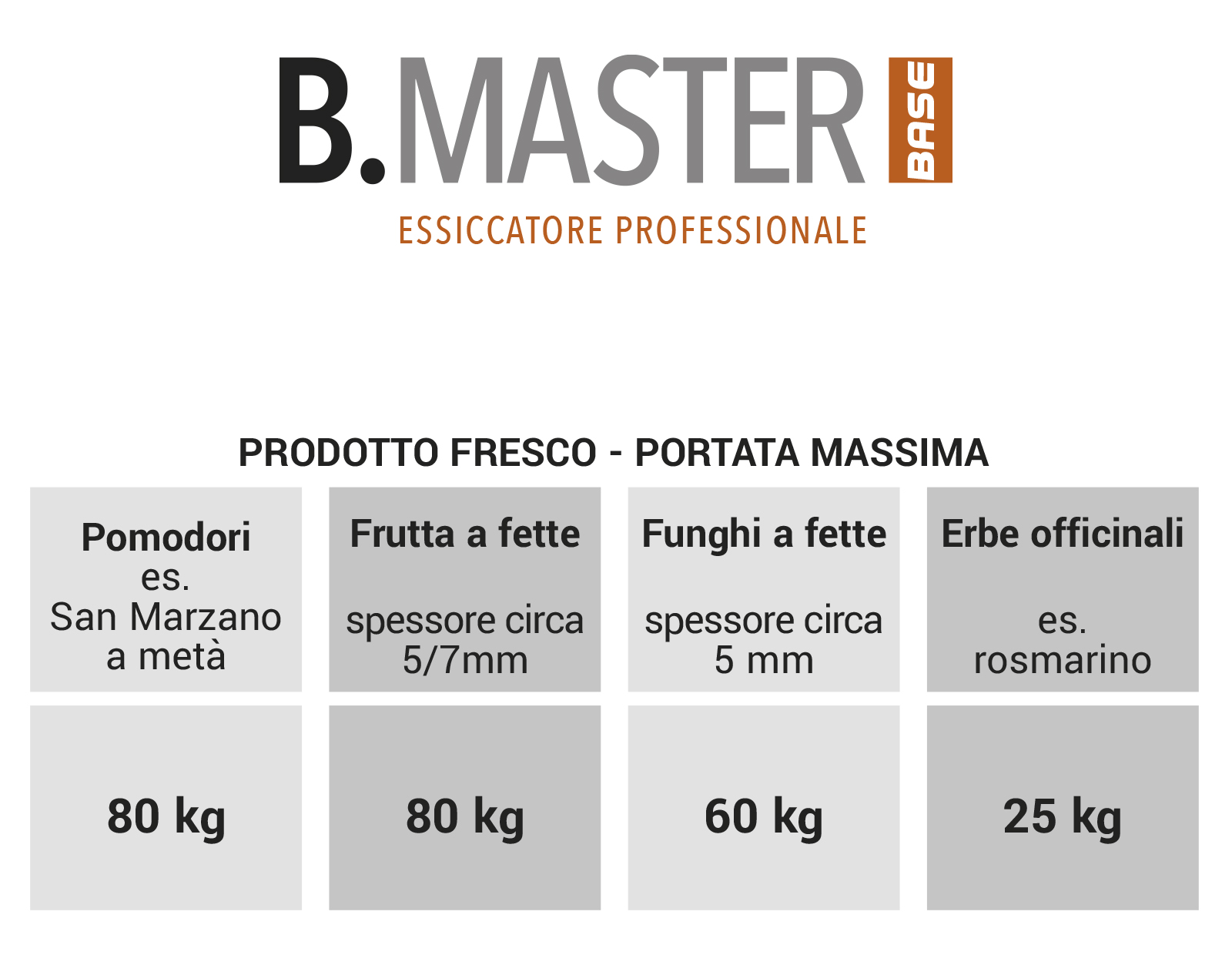 L’essiccatore per l’essiccazione professionale B.Master BASE è la risposta giusta per le aziende che intendano valorizzare i propri prodotti, creando nuove proposte per un mercato sempre più attento a qualità e genuinità ed al controllo della filiera. B.Master BASE racchiude tutte le potenzialità di un impianto di essiccazione professionale in dimensioni contenute, ed è ideale per le piccole attività che trasformano quantità limitate di prodotto con la massima cura per il risultato e per il rispetto delle materie prime. Versatilità e modularità fanno di B.Master una soluzione ottimale per ogni esigenza, permettendogli di adattarsi a diverse condizioni di utilizzo e garantendo la possibilità di espandere l’impianto anche in un secondo momento.